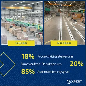 Bei XPERT Consulting & Management sind wir auf die Planung und Optimierung von Produktions- und Intralogistiksystemen für Industrie und Handel spezialisiert. Mit über 10 Jahren Erfahrung und Leidenschaft entwickeln wir nachhaltige und zukunftsfähige Produktivitätssteigerungen für Ihre Wettbewerbsfähigkeit.